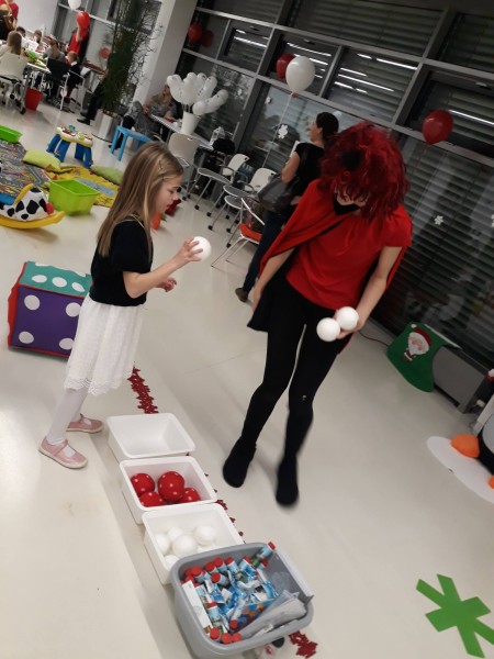 Co tady máme: 1-KOULOVANÁ (házení kouliček na nafukovacího sněhuláka, nebo tučňáka, nebo oba dva :o), 2-PLETENÍ VÁNOČKY (pletení látkové vánočky podle vzoru na obrázku), 3-DEJ GÓL! (hokejka a střílení látkovými puky na branku s nafukovacím mrožem), 4-ČERTOVSKÝ PING-PONG (cílem je, aby skákající míček skočil do jednoho z kelímků), 5-MAXI VLOČKY (hledání stejných vloček do páru), 6-HÁZENÍ STŘEVÍCEM (podle lidové tradice se hází za sebe barevným skřítkovským střevícem a kam ukazuje špička střevíce, takovou odměnu získá/ nebo takové úkoly plní), 7-LOSOVÁNÍ ČERTÍKŮ (děti si nejprve hodí obří kostkou počet pokusů losování a pak losují dřevěné obrázky z mikulášského pytle), 8-LOVENÍ KAPŘÍKŮ (klasický rybolov na udice), 9-VÁNOČNÍ KVÍZ (zábavný kvíz na barevné dece s polštářky), 10-ANDĚLSKÉ PLECHOVKY (shazování věže z plechovek bílými kouličkami), 11-STAVBA VĚŽE (stavba věže z velkých kostek s ledovými motivy), 12-KRMENÍ TULENĚ (házení kouliček na kobereček k plyšákovi), 13-KAM DOLETÍ ANDÍLEK (tvůrčí soutěž: každý si vlastnoručně vyrobí papírovou vlaštovku a vybarvený obrázek andílka na ni nalepí a hází co nejdále, přičemž nejdelší hody jsou označeny rekordem, který je třeba překonat), 14-PEKELNÁ PINKAČKA (překonání trasy současně s pinkáním nafouklého balonku), 15-VYKUTÁLENÍ ČERTÍCI (koulení čertíků až do pekelného cíle), 16-ANDÍLCI V LETU (házení látkových andílků na tabuli se suchým zipem). Každá soutěž má 2 verze obtížnosti (předškoláci a školáci). Může soutěžit i celá rodina.