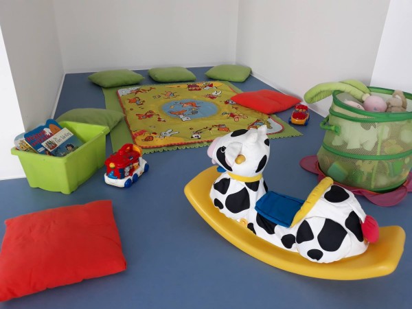 - sezení pro rodiče s jídelní krmící židličkou, box s knížkami a hračkami pro mimi.